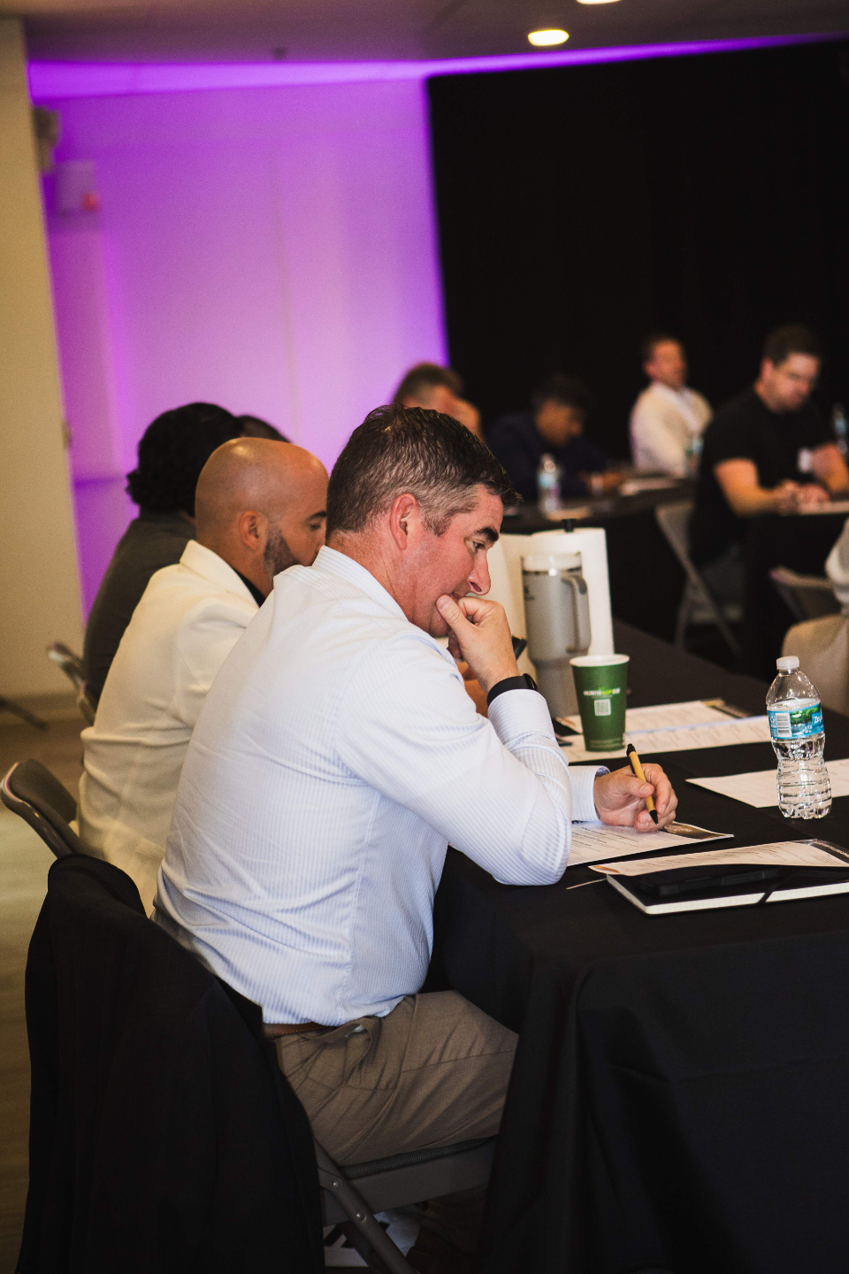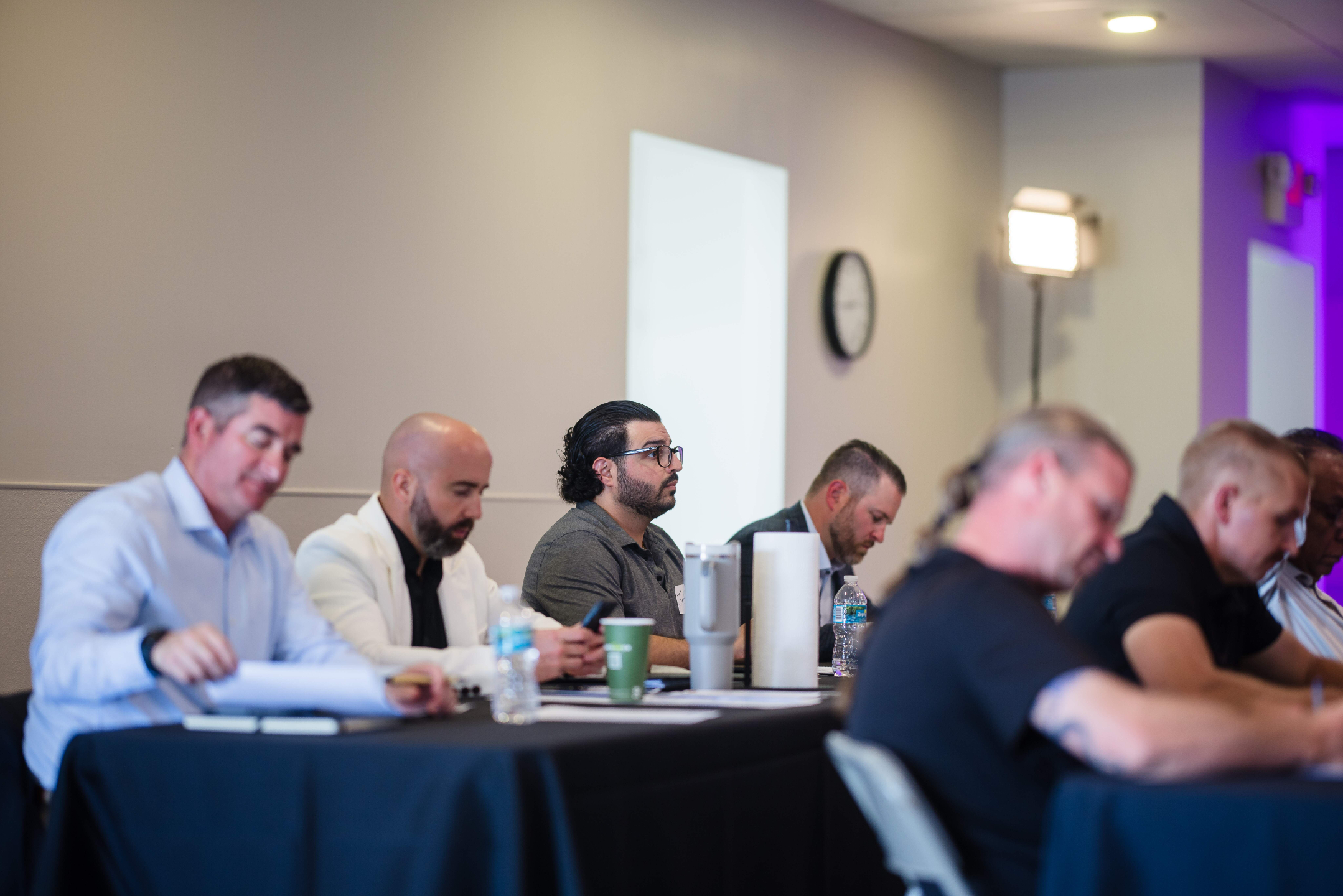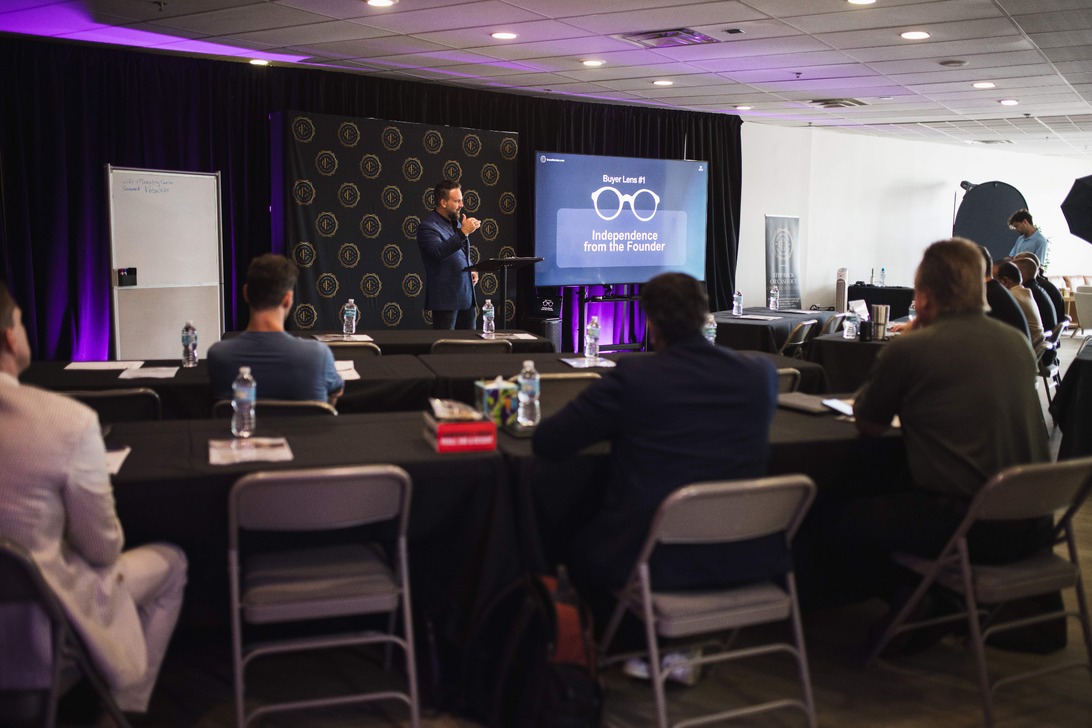 A small, intimate room of vetted $3M+ entrepreneurs — the conversations in the hallway are as valuable as the sessions